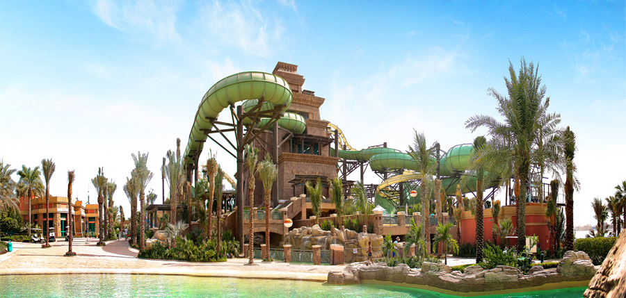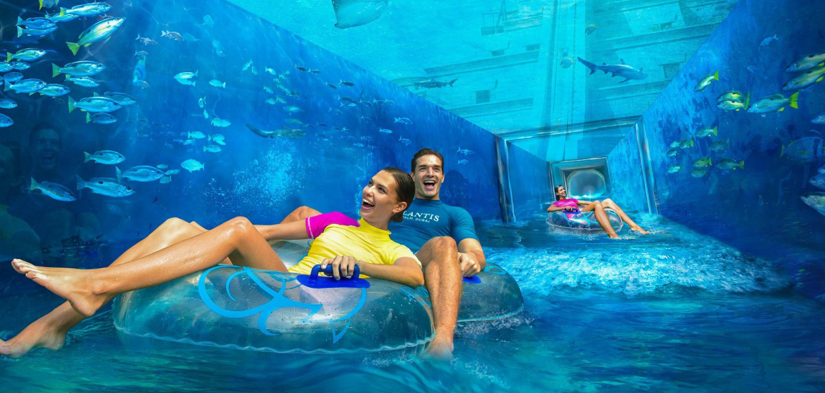 Dubai Travel Tourism provides you best packages to enjoy the premiere Aquaventure Water Park in the Middle East. It is located within Atlantis and features a wide array of rides and other attractions. We take care of our guests’ thirst for adventure and let them experience thrilling water slides. First and foremost, there is Tower of Neptune which is the most famous ride in Aquaventure Water Park. First, you’ll climb Maya pyramid, then fall through the 60 feet tunnel in a lagoon filled with sharks. In addition to that, it has the world’s largest slide tube and longest zip-line circuit suspended 20 meters above.. We even make sure that you can swim with the lagoon sharks if you are brave enough. Above all that, we have also arranged a six-person raft adventure for you among the palm trees present with 11 swimming pools. In the meantime, your kids can enjoy the play area on Splasher Island. Moreover, there are700 meters of private beach to enjoy. You can also experience a mile-long lazy river ride while floating in a tube. We make sure that your trip at Aquaventure Water Park is full of enjoyment and with full convenience. Our package allows you to visit this wonderful place at a great price