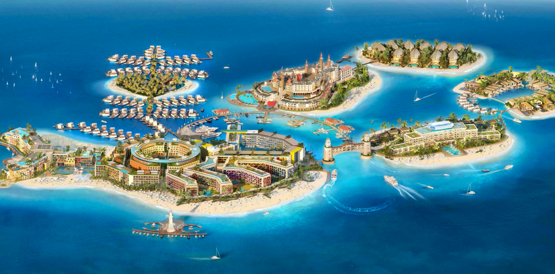 Located about 6 kilometers off the coast of Emirates of Dubai, the World Islands project is an artificial archipelago constructed in the shape of the world map developed into the continents.